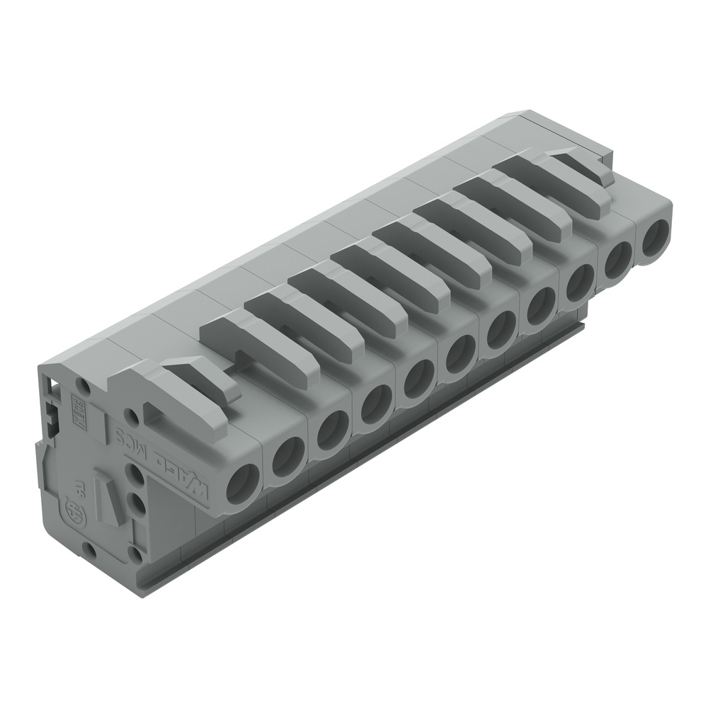 Wago Federleiste 232-111/026-000 Abgewinkelte Federleiste 11-polig Rastermaß 5 mm/0.197 in kodierbar mit 2 Rastklinken Leiterabgang zur welligen Seite der Stiftleiste grau Hersteller WAGO Serie 232 EAN Nr. 4044918384049 Warengruppe WAGO Multistecksystem
