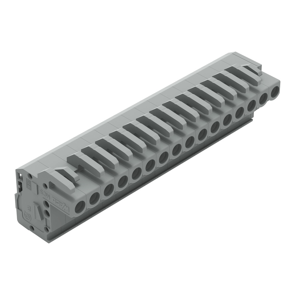 Wago Federleiste 232-116/026-000 Abgewinkelte Federleiste 16-polig Rastermaß 5 mm/0.197 in kodierbar mit 2 Rastklinken Leiterabgang zur welligen Seite der Stiftleiste grau Hersteller WAGO Serie 232 EAN Nr. 4044918384131 Warengruppe WAGO Multistecksystem