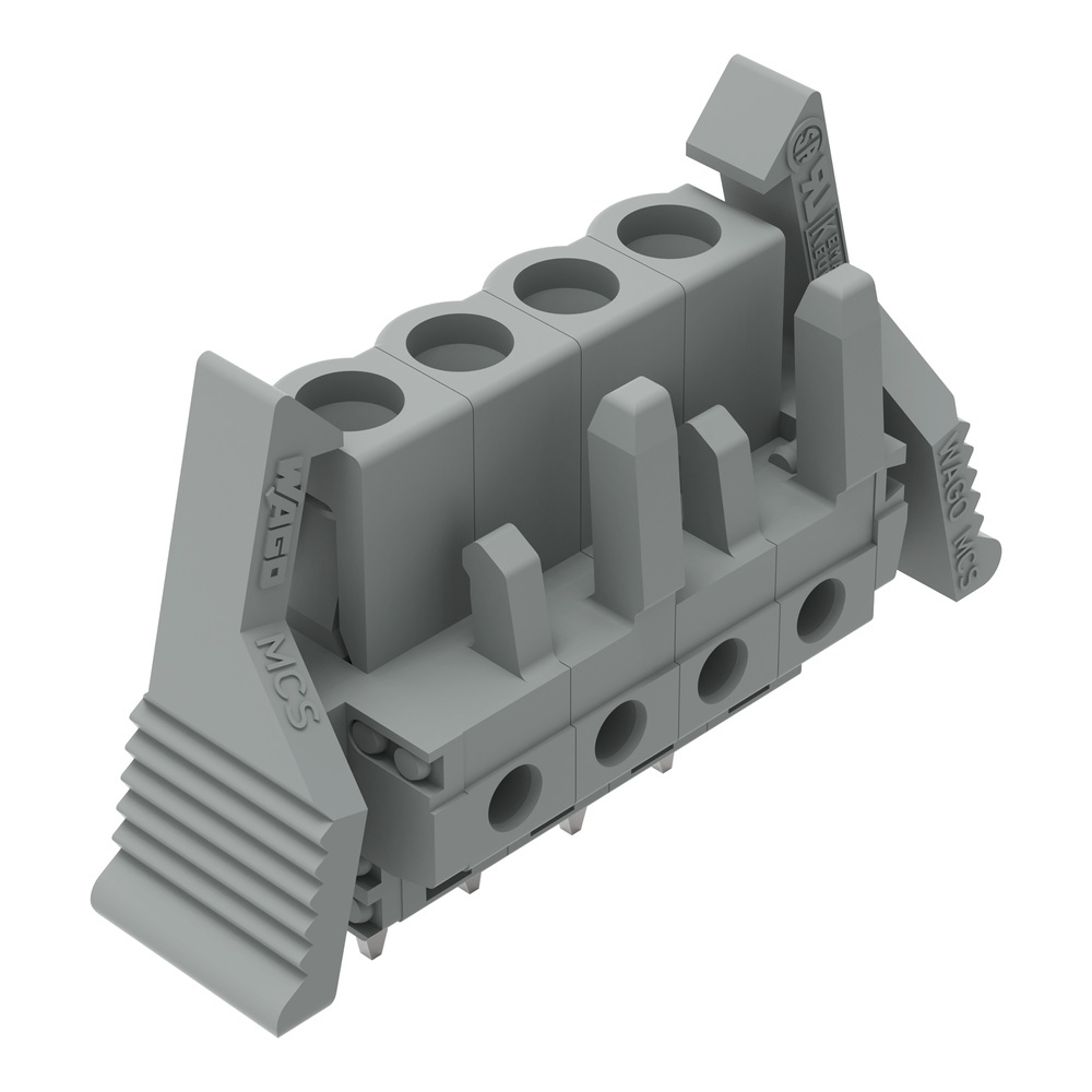 Wago Federleiste 232-134/039-000 Federleiste mit geraden Lötstiften und Verriegelungsklinken 4-polig Rastermaß 5 mm/0.197 in Einlötstift 0,6x1 mm kodierbar Steckrichtung senkrecht zur Leiterplatte mit 2 Rastklinken grau Wago Serie 232 EAN Nr. 4044918623230 Warengruppe WAGO Multistecksystem