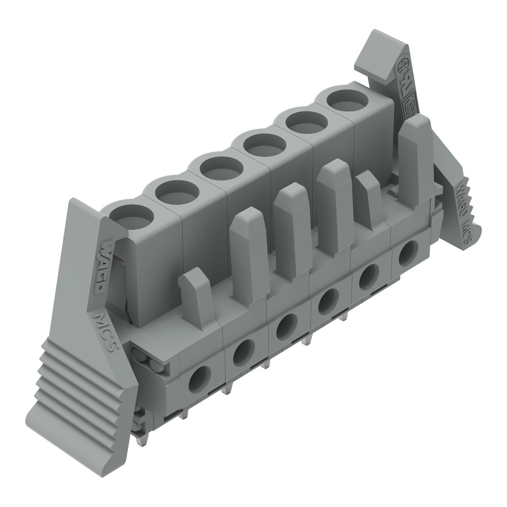 Wago Federleiste 232-136/039-000 Federleiste mit geraden Lötstiften und Verriegelungsklinken 6-polig Rastermaß 5 mm/0.197 in Einlötstift 0,6x1 mm kodierbar Steckrichtung senkrecht zur Leiterplatte mit 2 Rastklinken grau Wago Serie 232 EAN Nr. 4044918623322 Warengruppe WAGO Multistecksystem