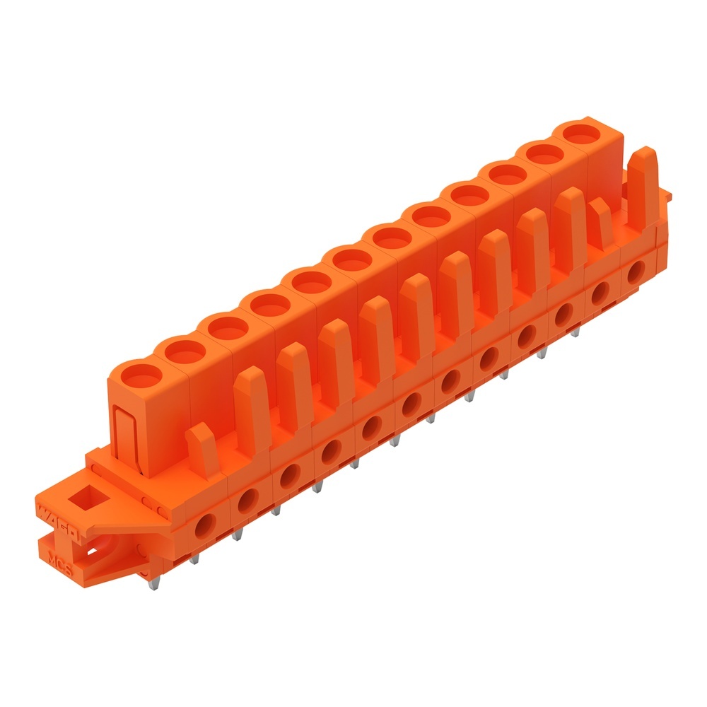 Wago Federleiste 232-172/031-000 Federleiste mit geraden Lötstiften und Durchführungsflanschen 12-polig Rastermaß 5,08 mm/0.2 in Einlötstift 0,6x1 mm kodierbar Steckrichtung senkrecht zur Leiterplatte mit 2 Rastklinken für durchgeführte Montage ornage Wago Serie 232 EAN Nr. 4044918624299 Warengruppe WAGO Multistecksystem