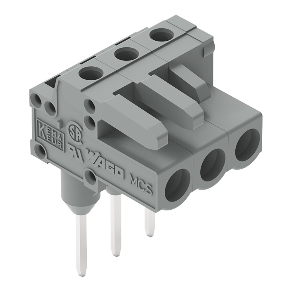 Wago Federleiste 232-233/005-000 Federleiste mit abgewinkelten langen Anschlussstiften 3-polig Teilungsmaß 5 mm/0.197 mm 0,6x1 mm kodierbar Steckrichtung horizontal nur 1 Rastklinke mit Kodiernase mit Rastnase grau Wago Serie 232 EAN Nr. 4044918569965 Warengruppe WAGO Multistecksystem