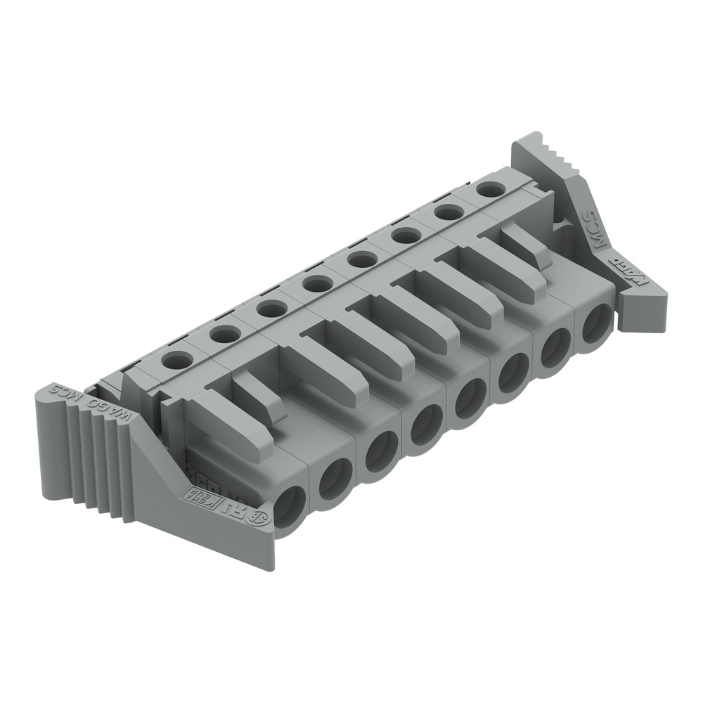 Wago Federleiste 232-238/039-000 Federleiste mit abgewinkelten Lötstiften und Verriegelungsklinken 8-polig Rastermaß 5 mm/0.197 in Einlötstift 0,6x1 mm kodierbar Steckrichtung parallel zur Leiterplatte mit 2 Rastklinken grau Wago Serie 232 EAN Nr. 4044918624893 Warengruppe WAGO Multistecksystem