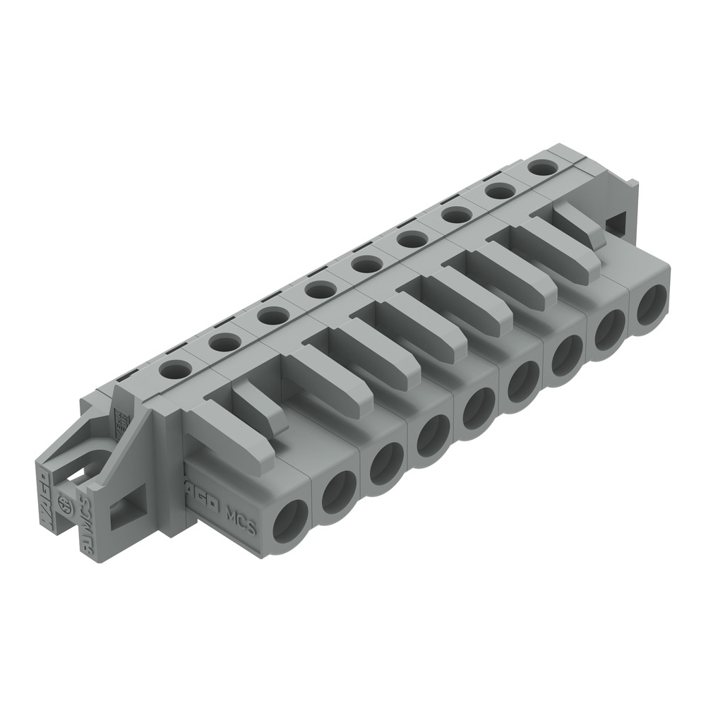 Wago Federleiste 232-239/031-000 Federleiste mit abgewinkelten Lötstiften und Durchführungsflanschen 9-polig Rastermaß 5 mm/0.197 in Einlötstift 0,6x1 mm kodierbar Steckrichtung parallel zur Leiterplatte mit 2 Rastklinken für durchgeführte Montage grau Wago Serie 232 EAN Nr. 4044918624916 Warengruppe WAGO Multistecksystem