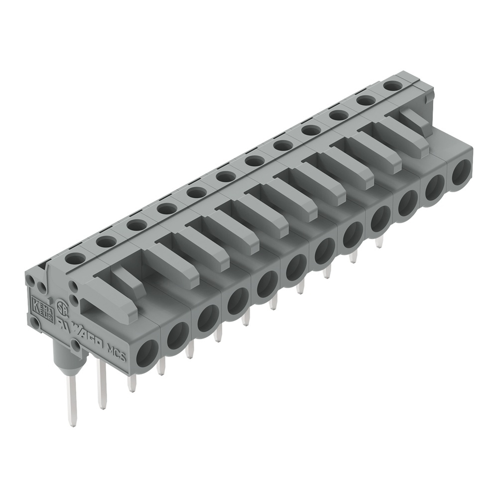 Wago Federleiste 232-242/005-000 Federleiste mit abgewinkelten langen Anschlussstiften 12-polig Teilungsmaß 5 mm/0.197 mm 0,6x1 mm kodierbar Steckrichtung horizontal mit 2 Rastklinken mit Kodiernase mit Rastnase grau Wago Serie 232 EAN Nr. 4044918570039 Warengruppe WAGO Multistecksystem