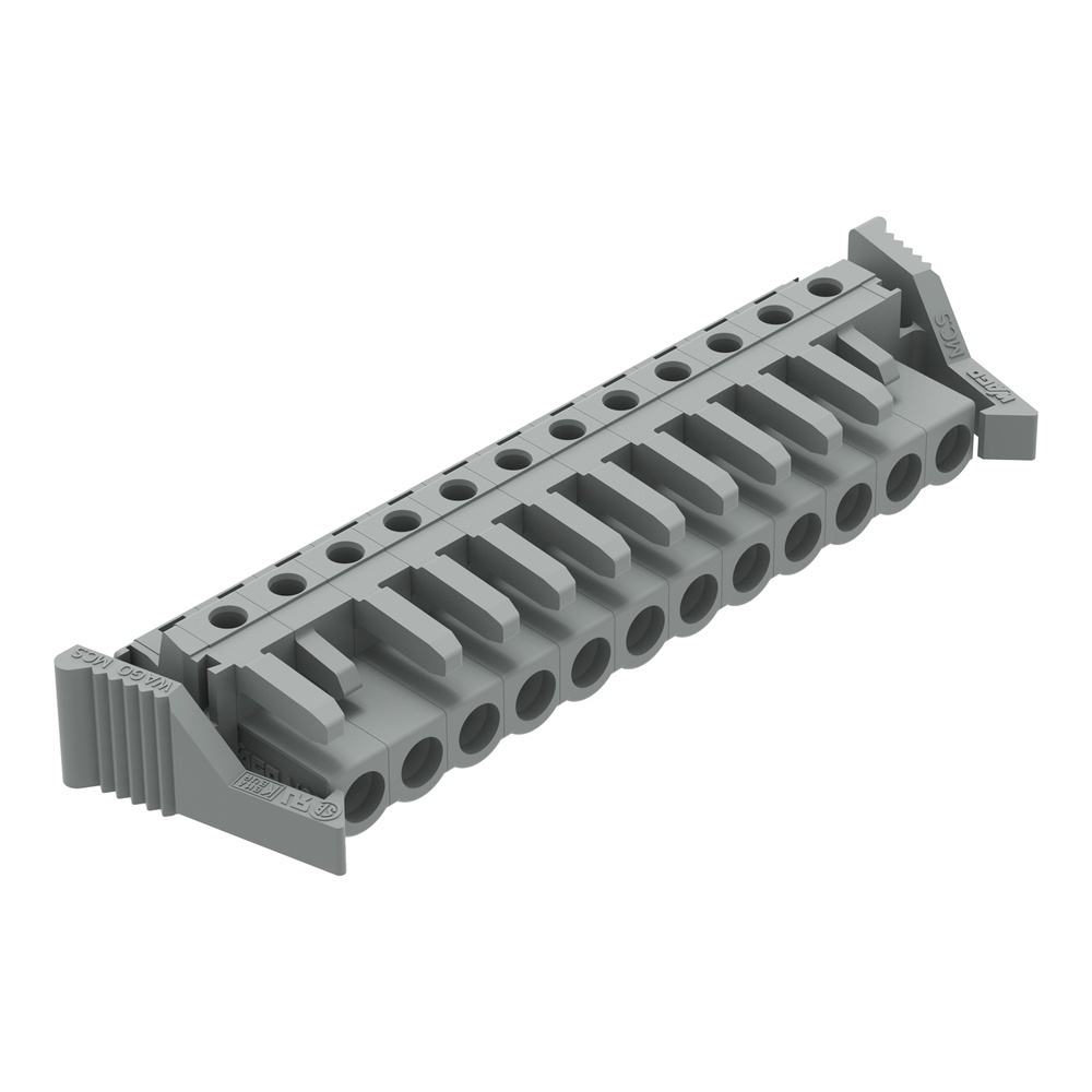 Wago Federleiste 232-242/039-000 Federleiste mit abgewinkelten Lötstiften und Verriegelungsklinken 12-polig Rastermaß 5 mm/0.197 in Einlötstift 0,6x1 mm kodierbar Steckrichtung parallel zur Leiterplatte mit 2 Rastklinken grau Wago Serie 232 EAN Nr. 4044918625005 Warengruppe WAGO Multistecksystem