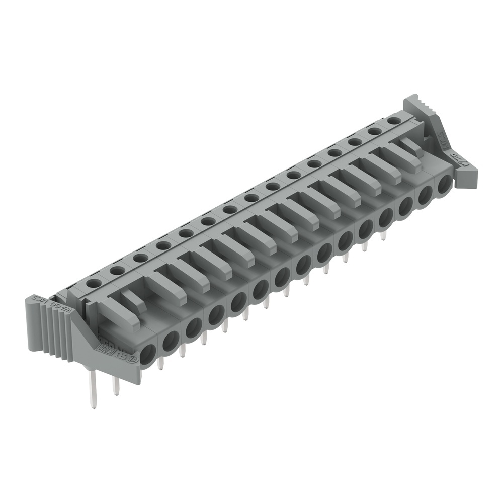 Wago Federleiste 232-245/005-000/039-000 Federleiste für Reihenklemmen,Stifte 0,6x1 mm,abgewinkelt,grau Federleiste für Reihenklemmen, Stifte 0,6x1 mm, abgewinkelt, Verriegelungsklinke, Rastermaß 5 mm, 15-polig, grau Steckverbindung für Reihenklemmen mit CAGE CLAMP -Anschluss Kontaktierung in der Leitereinführung von Reihenklemmen der Serie 280dank Federleisten mit langen Anschlussstiften Steckbarer, spannungsführender Ausgang dank Berührungsschutz der Federleisten im ungesteckten Zustand Kodierbar Hersteller Wago Nr. 232245005000039000 EAN Nr. 4055143031622 Warengruppe WAGO Multistecksystem