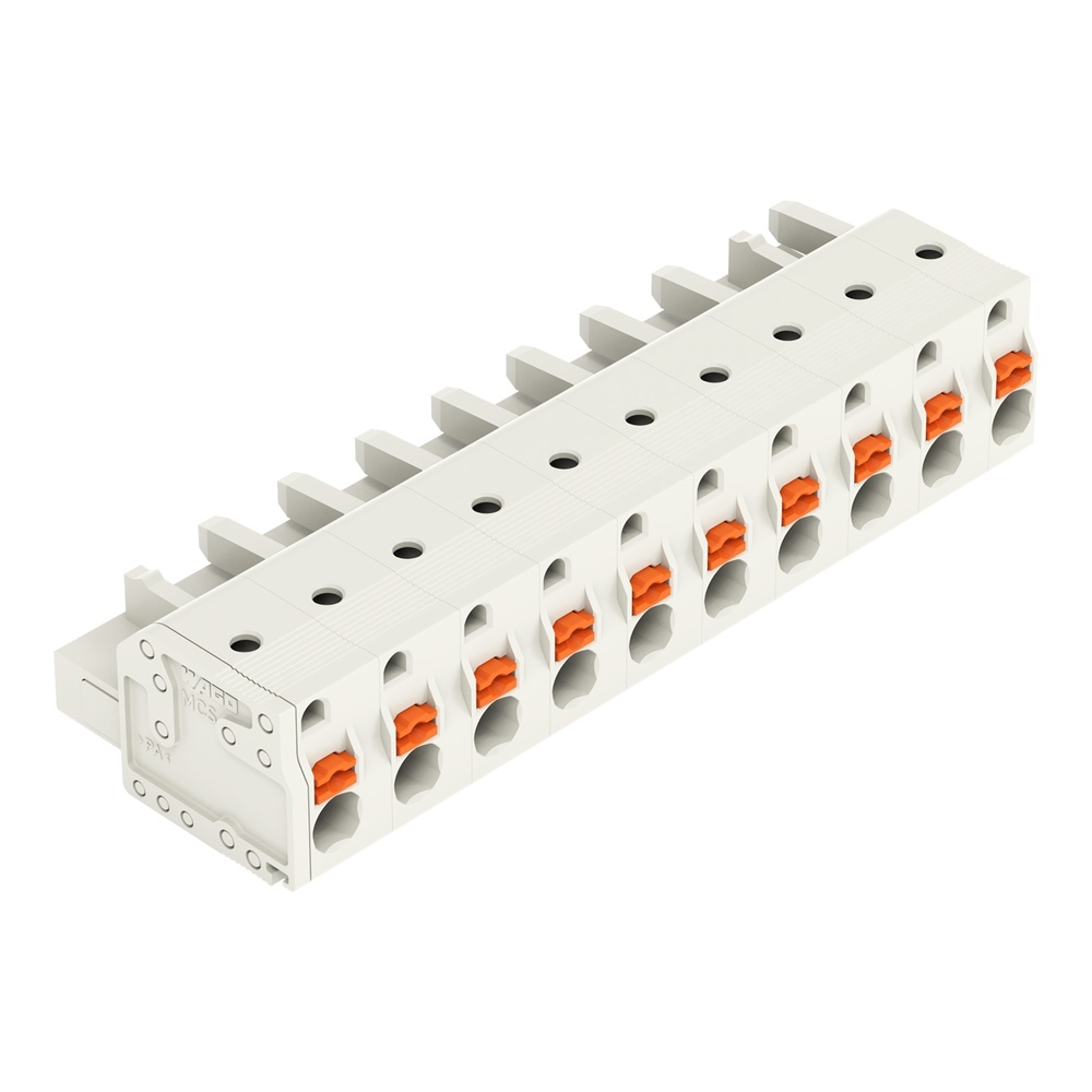 Wago Federleiste 2721-210/026-000 Federleiste mit Betätigungsdrückern 10-polig Rastermaß 7,5 mm/0.295 in 100 % fehlsteckgeschützt kodierbar mit 2 Rastnasen lichtgrau Wago Serie 2721 EAN Nr. 4045454745318 Warengruppe WAGO Multistecksystem