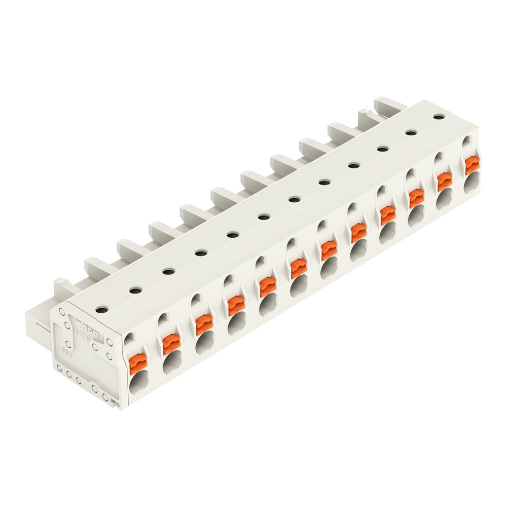 Wago Federleiste 2721-212/026-000 Federleiste mit Betätigungsdrückern 12-polig Rastermaß 7,5 mm/0.295 in 100 % fehlsteckgeschützt kodierbar mit 2 Rastnasen lichtgrau Wago Serie 2721 EAN Nr. 4045454745332 Warengruppe WAGO Multistecksystem