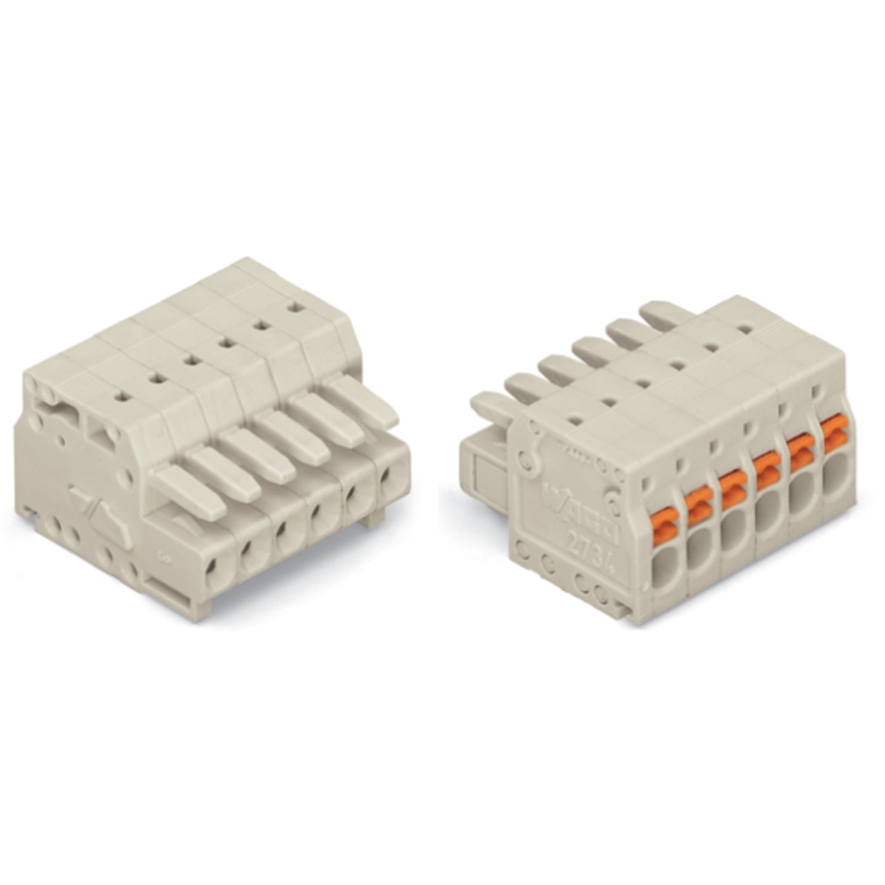 Wago Federleiste 2734-107 Federleiste mit Betätigungsdrückern 7-polig Rastermaß 3,5 mm/0.138 in 100 % fehlsteckgeschützt kodierbar lichtgrau Wago Serie 2734 EAN Nr. 4055143280228 Warengruppe WAGO Multistecksystem