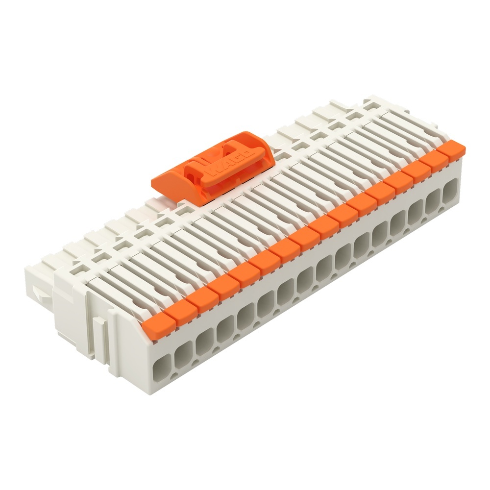 Wago Federleiste 2734-1116/329-000/336-000 1-Leiter-Federleiste,Hebel,Push-in CAGE CLAMP ,lichtgrau 1-Leiter-Federleiste, Hebel, Push-in CAGE CLAMP , 1,5 mm², Rastermaß 3,5 mm, 16-polig, 100% fehlsteckgeschützt, mittige Verriegelungsklinke, Zugentlastungsplatte, 1,50 mm², lichtgrau Intuitive und werkzeuglose Hebelbetätigung Universalanschluss für alle Leiterarten Direktes Stecken eindrähtiger Leiter und feindrähtiger Leiter mit Aderendhülsen Prüföffnung 90 Grad zur Leitereinführung 100 % fehlsteckgeschützt Kodierbar Hersteller Wago Nr. 27341116329000300000 EAN Nr. 4066966441741 Warengruppe WAGO Multistecksystem