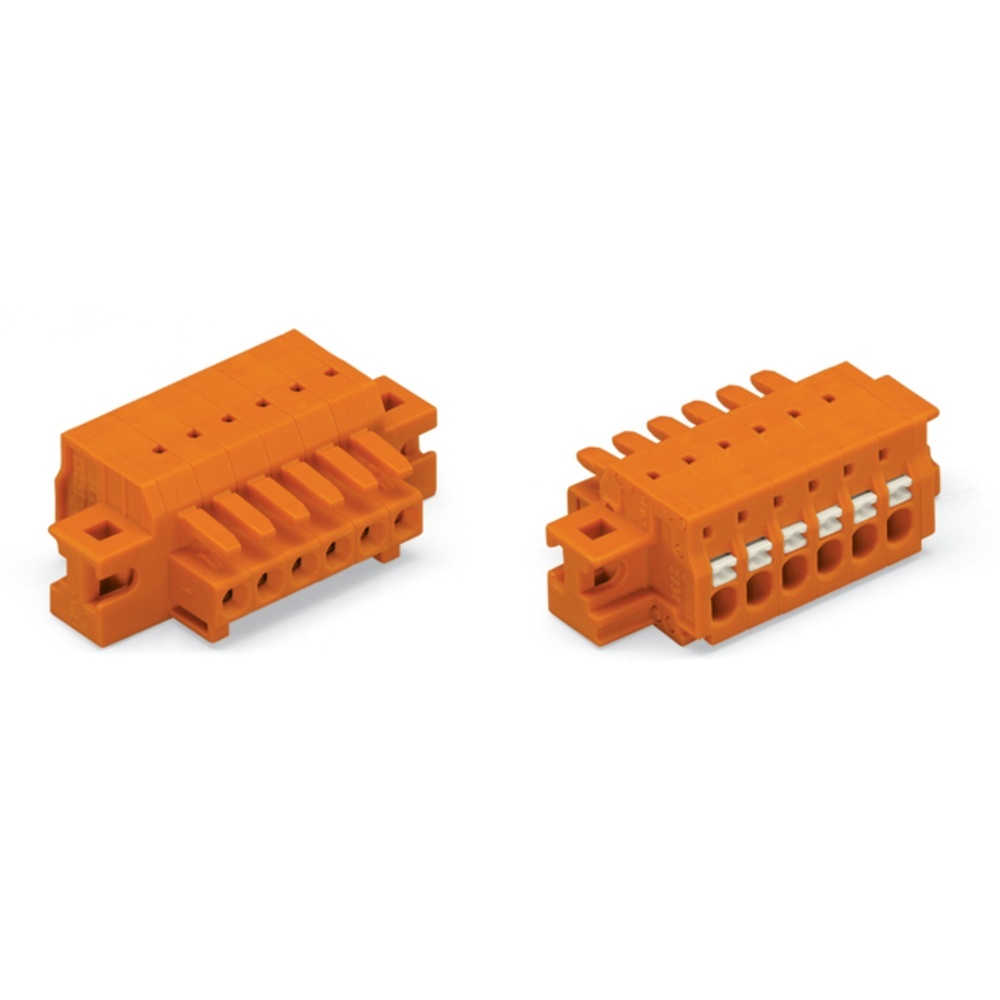Wago Federleiste 2734-210/031-000 Federleiste mit Betätigungsdrückern und Befestigungsflanschen 10-polig Rastermaß 3,81 mm/0.15 in 100 % fehlsteckgeschützt kodierbar orange Wago Serie 2734 EAN Nr. 4055143296229 Warengruppe WAGO Multistecksystem