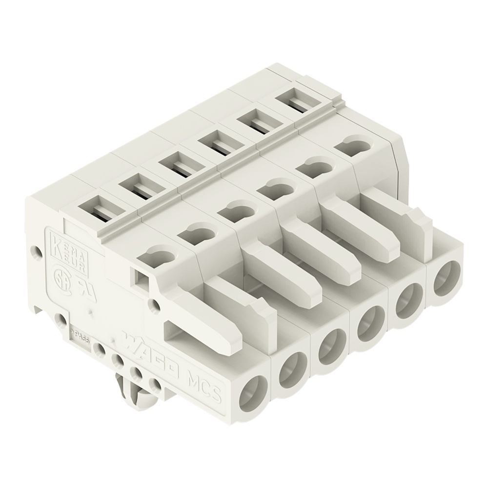 Wago Federleiste 721-106/008-000 Federleiste mit Rastfüßen 6-polig Rastermaß 5 mm/0.197 in 100 % fehlsteckgeschützt kodierbar mit 2 Rastnasen mit Montageadapter 209-137 auch auf TS 35 Blechdicke 0,6x1,2 mm Befestigungslöcher Ø 3,5 mm lichtgrau Hersteller WAGO Serie 721 EAN Nr. 4044918354172 Warengruppe WAGO Multistecksystem