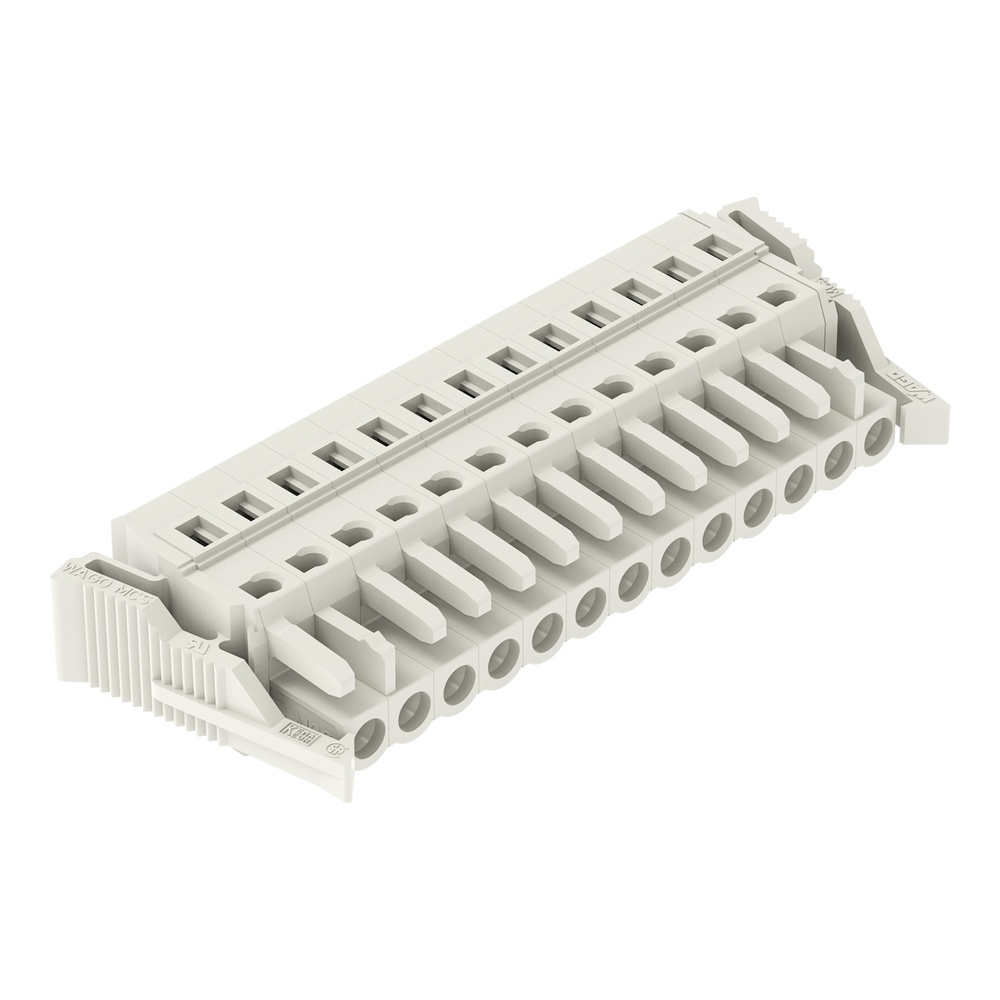 Wago Federleiste 721-113/008-000/037-000 1-Leiter-Federleiste,CAGE CLAMP ,2,5 mm²,lichtgrau 1-Leiter-Federleiste, CAGE CLAMP , 2,5 mm², Rastermaß 5 mm, 13-polig, 100% fehlsteckgeschützt, seitliche Verriegelungsklinken, Rastfüße, 2,50 mm², lichtgrau Universalanschluss für alle Leiterarten Vereinfachte Verdrahtung in der Kabelvorkonfektionierung und auf Geräten dank zweier Betätigungsrichtungen für die CAGE CLAMP Steckbarer Prüfabgriff 100 % fehlsteckgeschützt Kodierbar Hersteller Wago Nr. 721113008000037000 EAN Nr. 4050821405740 Warengruppe WAGO Multistecksystem