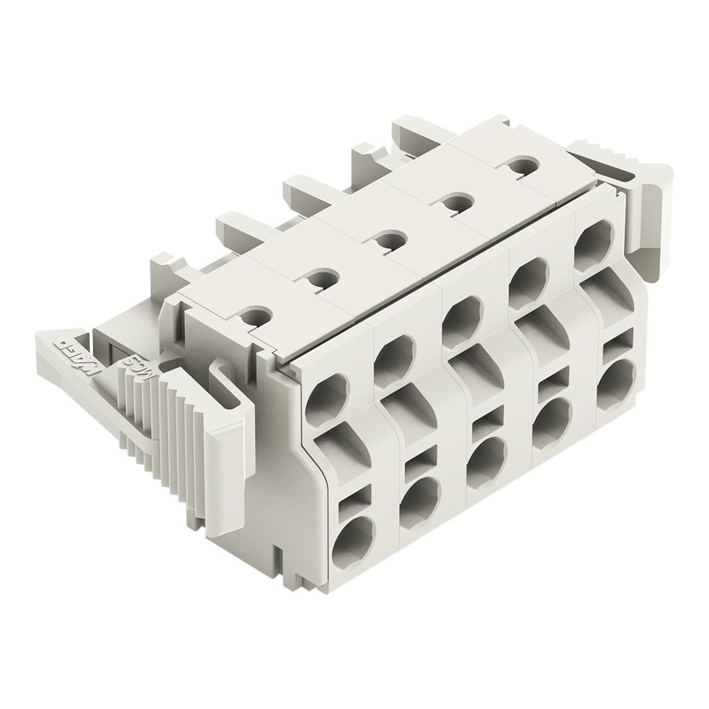 Wago Federleiste 721-2205/037-000 2-Leiter-Federleiste mit Verriegelungsklinken 5-polig Rastermaß 7,5 mm/0.295 in kodierbar mit 2 Rastnasen 100 % fehlsteckgeschützt lichtgrau Hersteller WAGO Serie 721 EAN Nr. 4044918567701 Warengruppe WAGO Multistecksystem