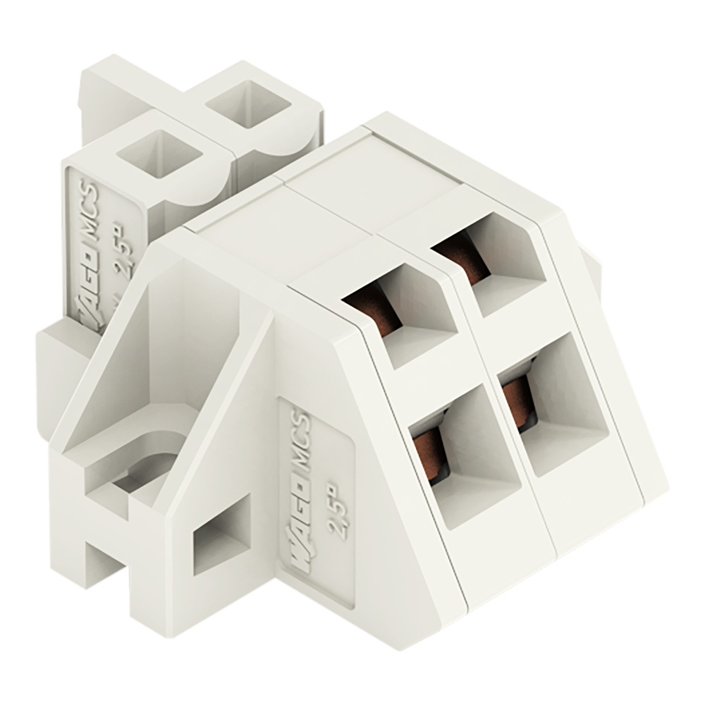 Wago Federleiste 721-304/031-000 Abgewinkelte Federleiste mit Befestigungsflanschen 4-polig Rastermaß 5 mm/0.197 in 100 % fehlsteckgeschützt für Oberflächenmontage für Schraub- o.ä. Befestigungsarten lichtgrau Wago Serie 721 EAN Nr. 4044918573917 Warengruppe WAGO Multistecksystem
