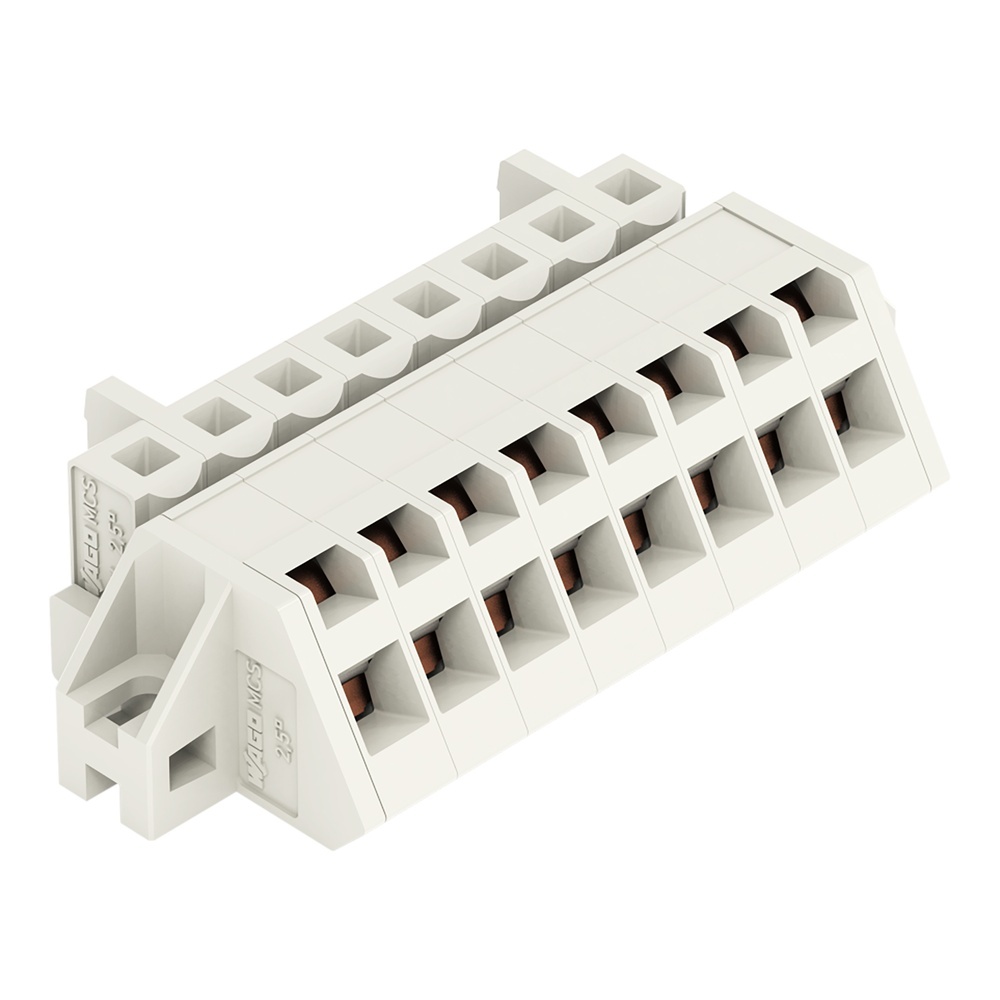 Wago Federleiste 721-308/031-000 Abgewinkelte Federleiste mit Befestigungsflanschen 8-polig Rastermaß 5 mm/0.197 in 100 % fehlsteckgeschützt für Oberflächenmontage für Schraub- o.ä. Befestigungsarten lichtgrau Wago Serie 721 EAN Nr. 4044918574068 Warengruppe WAGO Multistecksystem