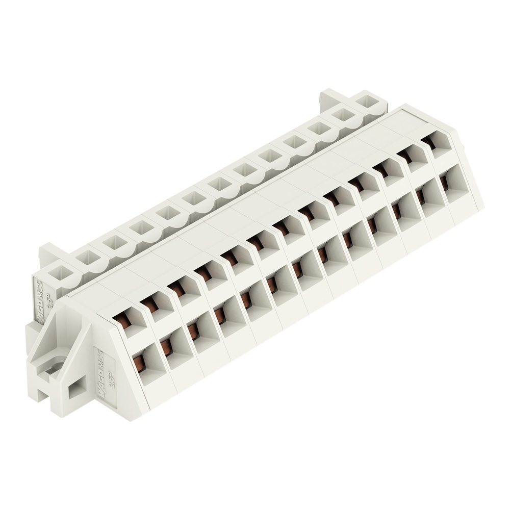 Wago Federleiste 721-313/031-000 Abgewinkelte Federleiste mit Befestigungsflanschen 13-polig Rastermaß 5 mm/0.197 in 100% fehlsteckgeschützt CAGE CLAMP -Anschluss für Oberflächenmontage für Schraub- o.ä. Befestigungsarten lichtgrau Wago Serie 721 EAN Nr. 4055143903707 Warengruppe WAGO Multistecksystem