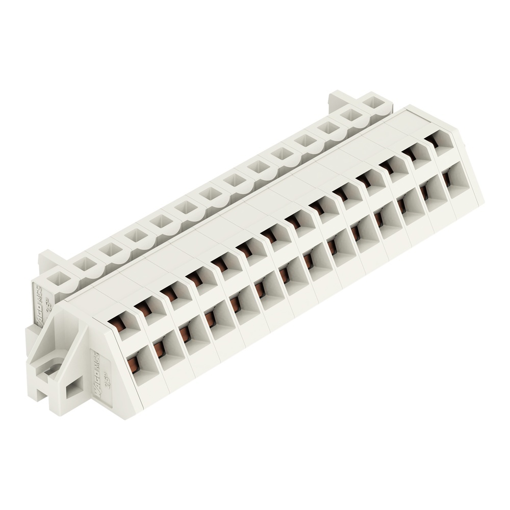 Wago Federleiste 721-314/031-000 Abgewinkelte Federleiste mit Befestigungsflanschen 14-polig Rastermaß 5 mm/0.197 in 100 % fehlsteckgeschützt für Oberflächenmontage für Schraub- o.ä. Befestigungsarten lichtgrau Wago Serie 721 EAN Nr. 4044918574396 Warengruppe WAGO Multistecksystem