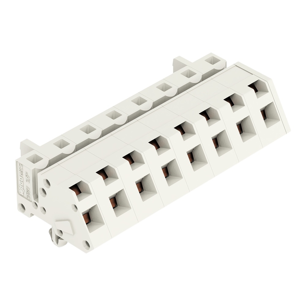Wago Federleiste 721-338/008-000 Abgewinkelte Federleiste mit Rastfüßen 8-polig Rastermaß 7,5 mm/0.295 in 100 % fehlsteckgeschützt für Oberflächenmontage Blechdicke 0,6x1,2 mm Befestigungslöcher Ø 3,5 mm lichtgrau Hersteller WAGO Serie 721 EAN Nr. 4017332747899 Warengruppe WAGO Multistecksystem