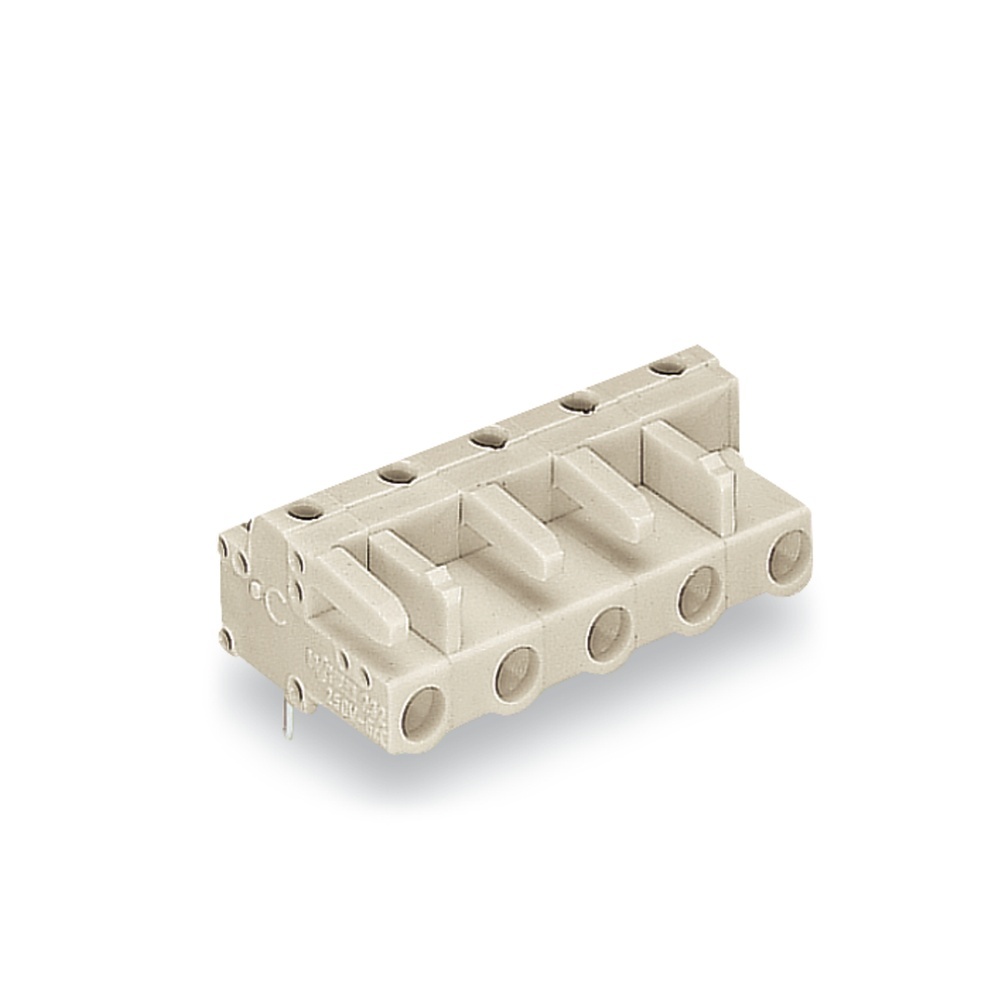 Wago Federleiste 722-834 Federleiste mit abgewinkelten Lötstiften 4-polig Rastermaß 7,5 mm/0.295 in 100 % fehlsteckgeschützt Einlötstift 0,6x1 mm kodierbar Steckrichtung parallel zur Leiterplatte mit 2 Rastnasen mit Kodiernase lichtgrau Wago Serie 722 EAN Nr. 4044918581028 Warengruppe WAGO Multistecksystem