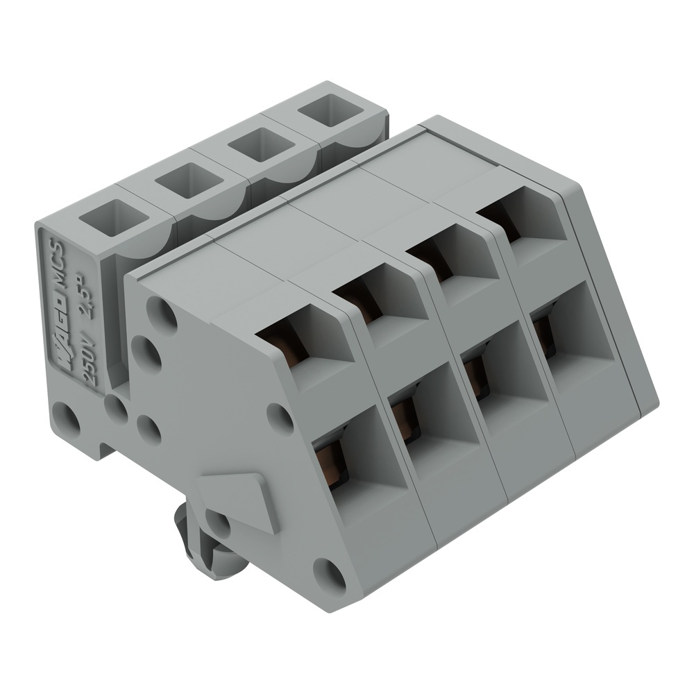Wago Federleiste 731-504/008-000 Abgewinkelte Federleiste mit Rastfuß 4-polig Rastermaß 5 mm/0.197 in Blechdicke 0,6x1,2 mm für Oberflächenmontage Befestigungslöcher Ø 3,5 mm grau Hersteller WAGO Serie 731 EAN Nr. 4044918575607 Warengruppe WAGO Multistecksystem