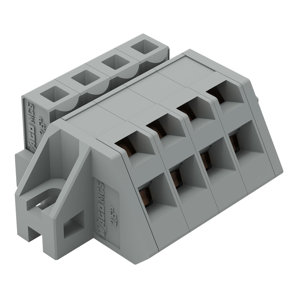 Wago Federleiste 731-504/031-000 Abgewinkelte Federleiste mit Befestigungsflanschen 4-polig Rastermaß 5 mm/0.197 in für Oberflächenmontage für Schraub- o.ä. Befestigungsarten grau Hersteller WAGO Serie 731 EAN Nr. 4044918575096 Warengruppe WAGO Multistecksystem