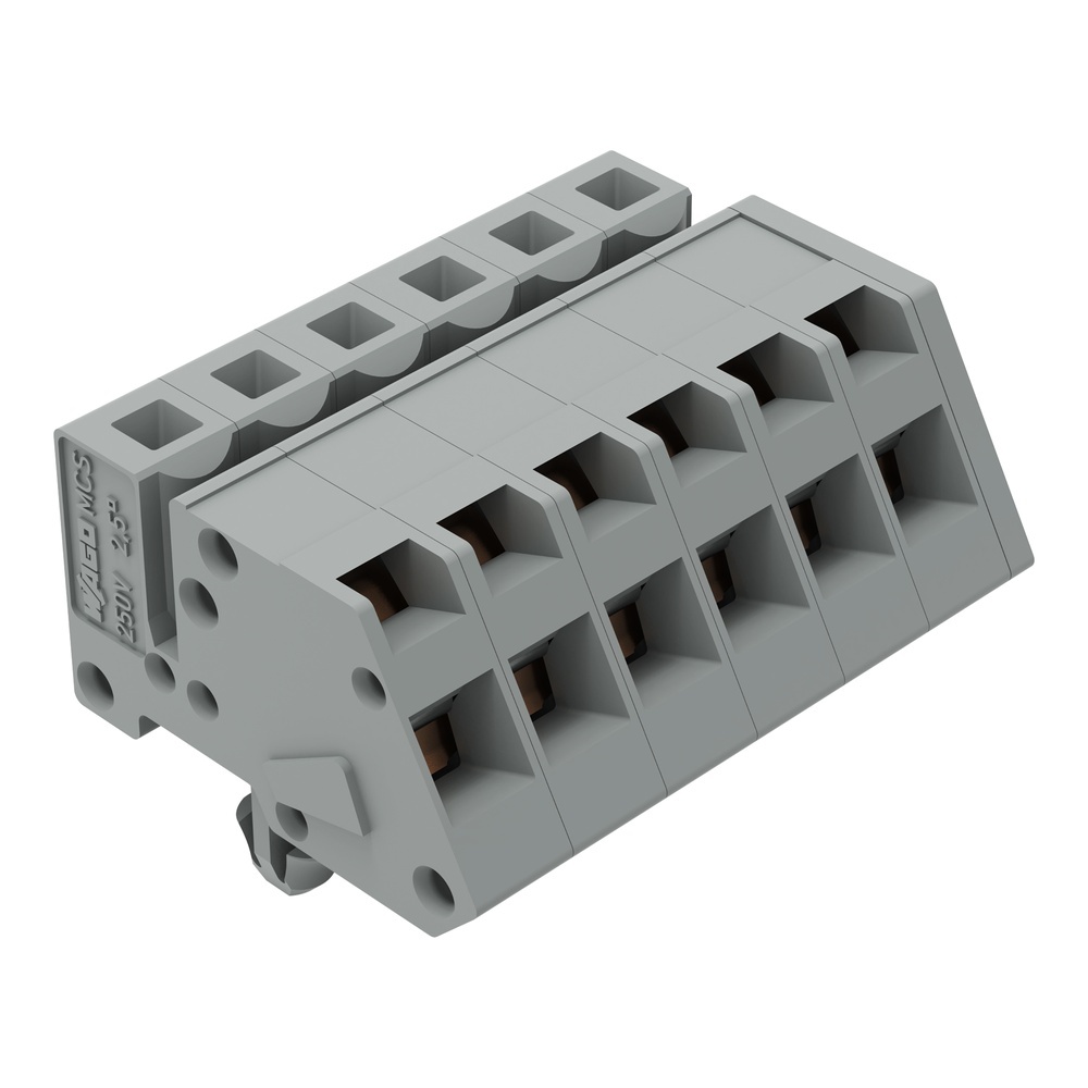 Wago Federleiste 731-506/008-000 Abgewinkelte Federleiste mit Rastfuß 6-polig Rastermaß 5 mm/0.197 in Blechdicke 0,6x1,2 mm für Oberflächenmontage Befestigungslöcher Ø 3,5 mm grau Wago Serie 731 EAN Nr. 4044918575973 Warengruppe WAGO Multistecksystem