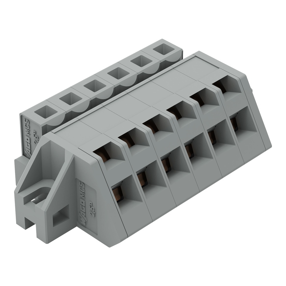 Wago Federleiste 731-506/031-000 Abgewinkelte Federleiste mit Befestigungsflanschen 6-polig Rastermaß 5 mm/0.197 in für Oberflächenmontage für Schraub- o.ä. Befestigungsarten grau Hersteller WAGO Serie 731 EAN Nr. 4044918575140 Warengruppe WAGO Multistecksystem