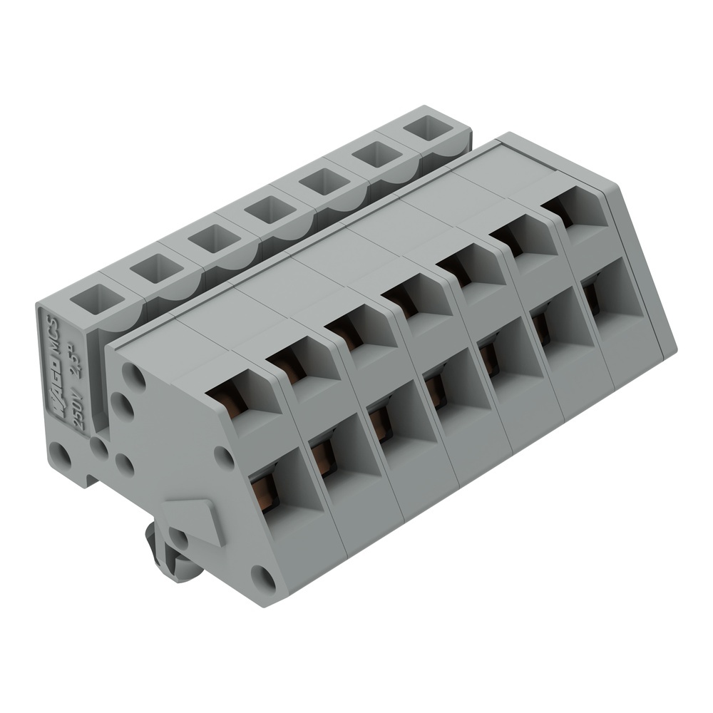 Wago Federleiste 731-507/008-000 Abgewinkelte Federleiste mit Rastfuß 7-polig Rastermaß 5 mm/0.197 in Blechdicke 0,6x1,2 mm für Oberflächenmontage Befestigungslöcher Ø 3,5 mm grau Wago Serie 731 EAN Nr. 4044918575980 Warengruppe WAGO Multistecksystem