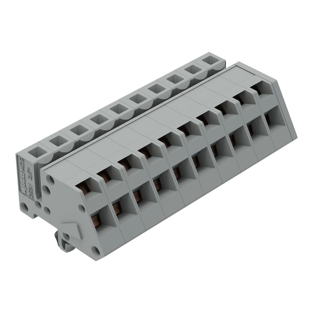 Wago Federleiste 731-510/008-000 Abgewinkelte Federleiste mit Rastfuß 10-polig Rastermaß 5 mm/0.197 in Blechdicke 0,6x1,2 mm für Oberflächenmontage Befestigungslöcher Ø 3,5 mm grau Wago Serie 731 EAN Nr. 4044918576000 Warengruppe WAGO Multistecksystem