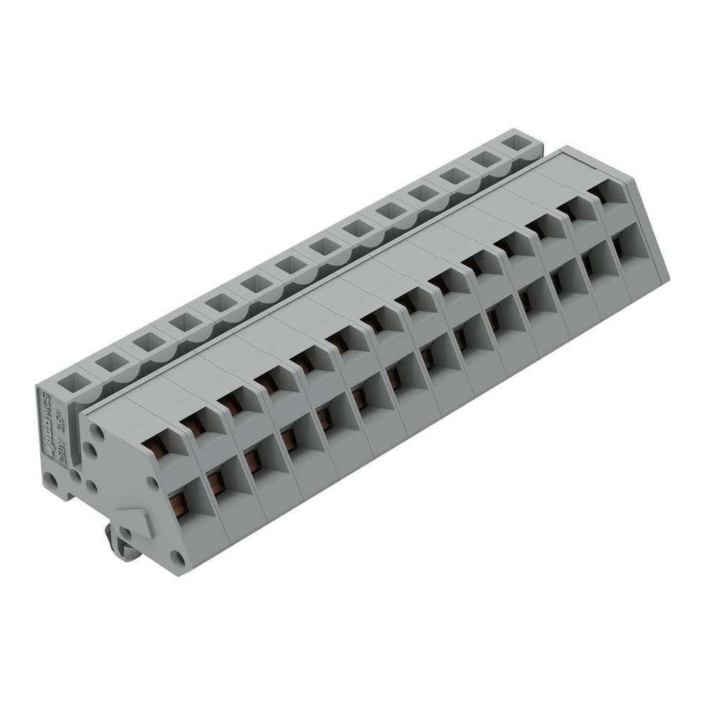 Wago Federleiste 731-514/008-000 Abgewinkelte Federleiste mit Rastfuß 14-polig Rastermaß 5 mm/0.197 in Blechdicke 0,6x1,2 mm für Oberflächenmontage Befestigungslöcher Ø 3,5 mm grau Wago Serie 731 EAN Nr. 4044918944878 Warengruppe WAGO Multistecksystem