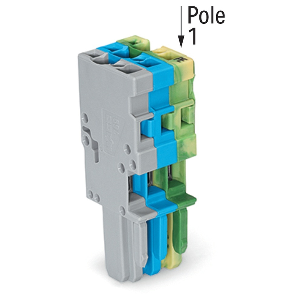 Wago Federleiste 769-103/000-038 1-Leiter-Federleiste mit PE-Anfangsmodul (grün-gelb) zum Einstecken in Basisklemmen oder Stiftleisten kodierbar brückbar mit Mini-Querbrückern 3-polig grau, blau, grün-gelb Wago Serie 769 EAN Nr. 4045454285159 Warengruppe WAGOxCOM System