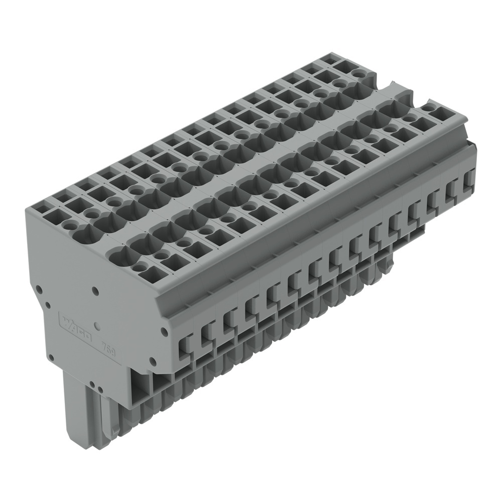 Wago Federleiste 769-135 2-Leiter-Federleiste zum Einstecken in Basisklemmen oder Stiftleisten kodierbar brückbar mit Quer- und Schachtelbrückern 15-polig grau Hersteller WAGO Serie 769 EAN Nr. 4044918474405 Warengruppe WAGOxCOM System