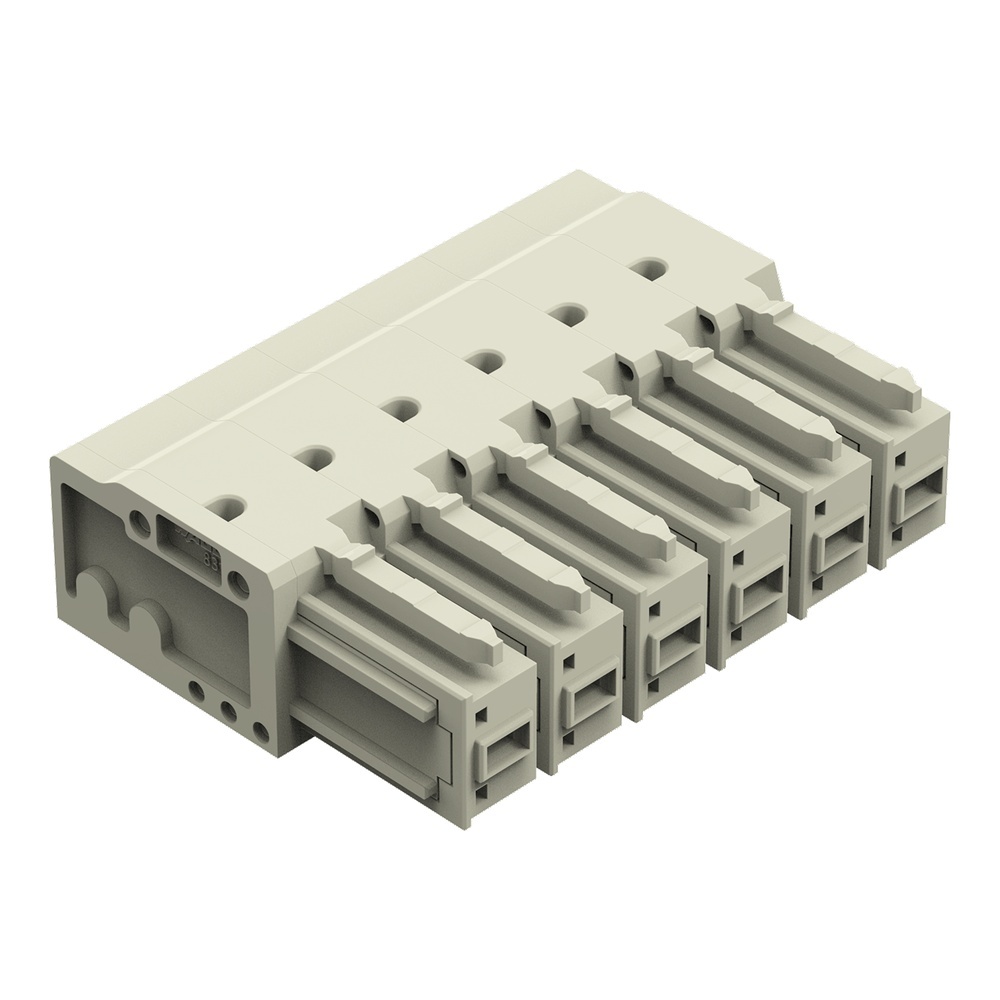 Wago Federleiste 831-3526 THT-Federleiste,abgewinkelt,Rastermaß 7,62 mm,lichtgrau THT-Federleiste, abgewinkelt, Rastermaß 7,62 mm, 6-polig, 100% fehlsteckgeschützt, Lötstift 1,0x1,2 mm, lichtgrau Federleisten, mit geraden und abgewinkelten Lötstiften, für rechtwinklige und parallele Steckrichtung zur Leiterplatte 3 Lötstifte je Pol, für eine mechanisch und elektrisch hohe belastbare Verbindung zur Leiterplatte 100 % fehlsteckgeschützt Kodierbar Hersteller Wago Nr. 8313526 EAN Nr. 4066966087048 Warengruppe WAGO Multistecksystem