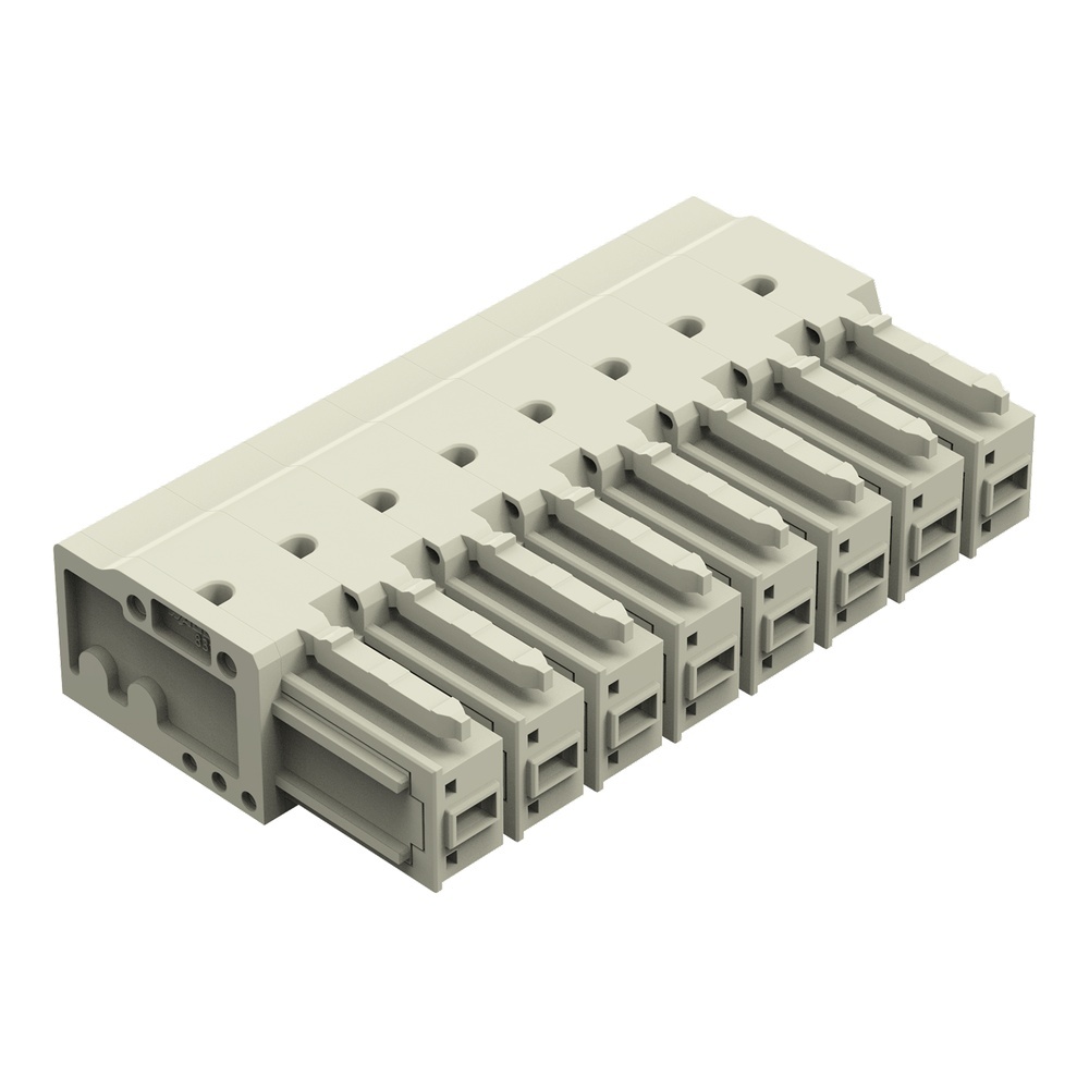 Wago Federleiste 831-3528 THT-Federleiste,abgewinkelt,Rastermaß 7,62 mm,lichtgrau THT-Federleiste, abgewinkelt, Rastermaß 7,62 mm, 8-polig, 100% fehlsteckgeschützt, Lötstift 1,0x1,2 mm, lichtgrau Federleisten, mit geraden und abgewinkelten Lötstiften, für rechtwinklige und parallele Steckrichtung zur Leiterplatte 3 Lötstifte je Pol, für eine mechanisch und elektrisch hohe belastbare Verbindung zur Leiterplatte 100 % fehlsteckgeschützt Kodierbar Hersteller Wago Nr. 8313528 EAN Nr. 4066966087062 Warengruppe WAGO Multistecksystem