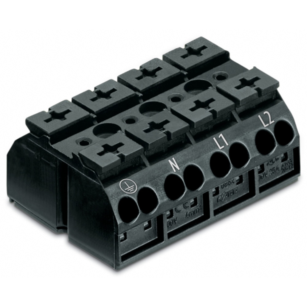 Wago Geräteanschlussklemme 862-1594 4-Leiter-Geräteanschlussklemme Rastfuß an Pos. 1+4 PE-N-L1-L2 ohne PE-Kontakt 4-polig schwarz Hersteller WAGO Serie 862 EAN Nr. 4044918509640 Warengruppe WAGO Miniklemmen