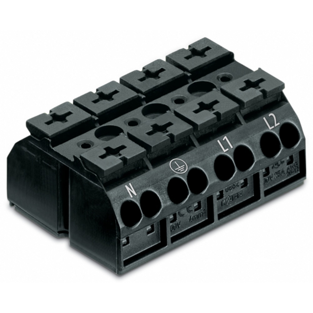 Wago Geräteanschlussklemme 862-2594 4-Leiter-Geräteanschlussklemme Rastfuß an Pos. 1+4 N-PE-L1-L2 ohne PE-Kontakt 4-polig schwarz Hersteller WAGO Serie 862 EAN Nr. 4044918510172 Warengruppe WAGO Miniklemmen
