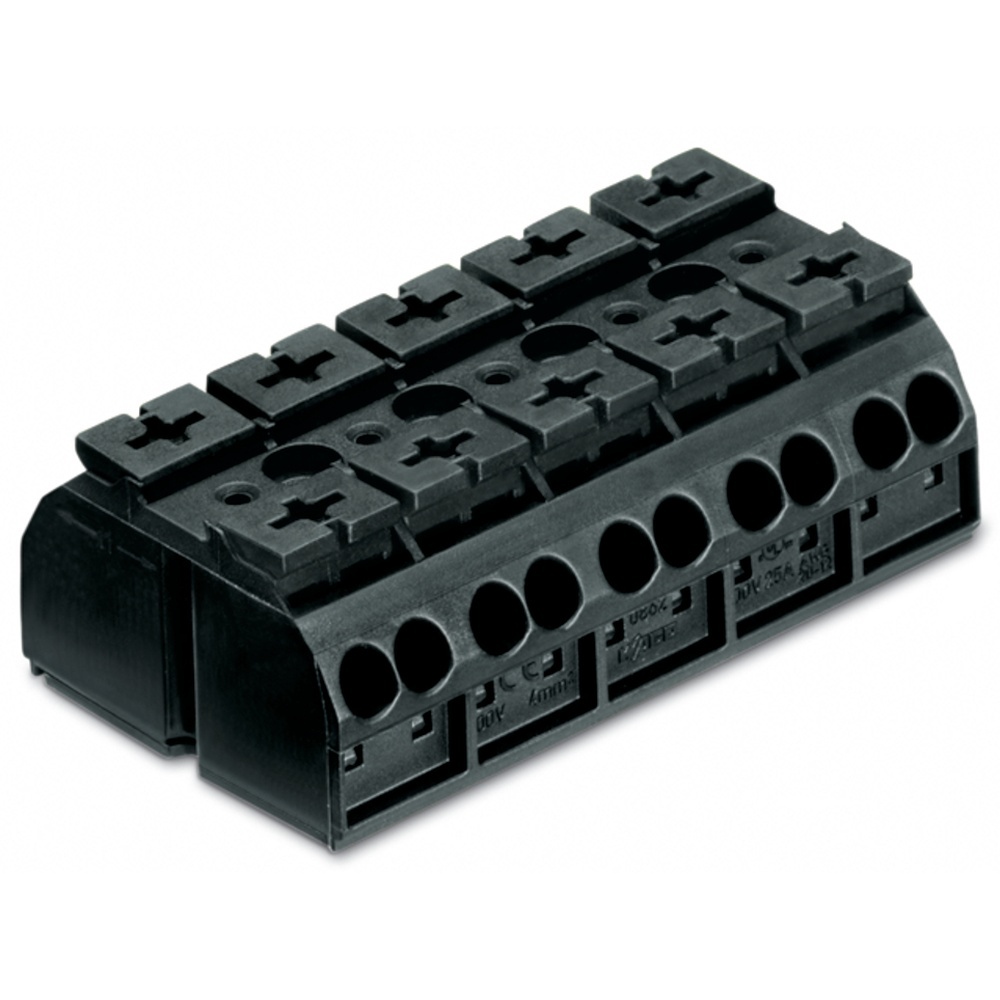 Wago Geräteanschlussklemme 862-505 4-Leiter-Geräteanschlussklemme für Schraube und Mutter M3 oder für selbstschneidende Schraube Ø 2,9 mm von oben ohne Aufdruck ohne PE-Kontakt 5-polig schwarz Hersteller WAGO Serie 862 EAN Nr. 4044918509060 Warengruppe WAGO Miniklemmen