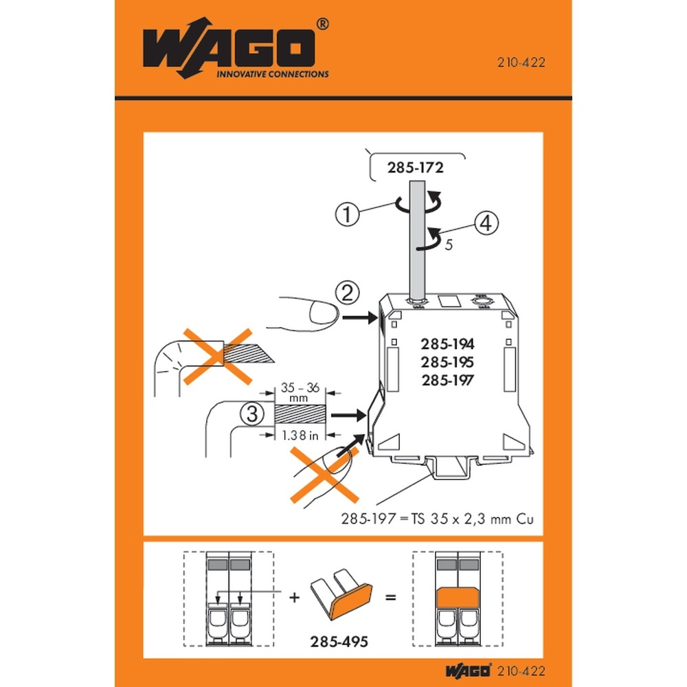 Wago Handhabungsaufkleber 210-422 Handhabungsaufkleber für Hochstromklemmen Serie 285 Wago Serie 210 EAN Nr. 4017332632478 Warengruppe WAGO Zubehör