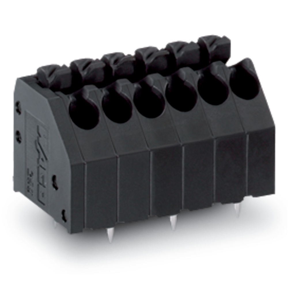 Wago Klemmenleiste 250-207/353-604 Klemmenleiste mit Betätigungsdrückern 1 Lötstift/Pol versetzt 7-polig Rastermaß 3,5 mm/0.138 in mit Prüföffnung für Prüfstift bis Ø 1,3 mm Reflow-Technik schwarz Wago Serie 250 EAN Nr. 4045454915995 Warengruppe WAGO Durchführungsklemmen