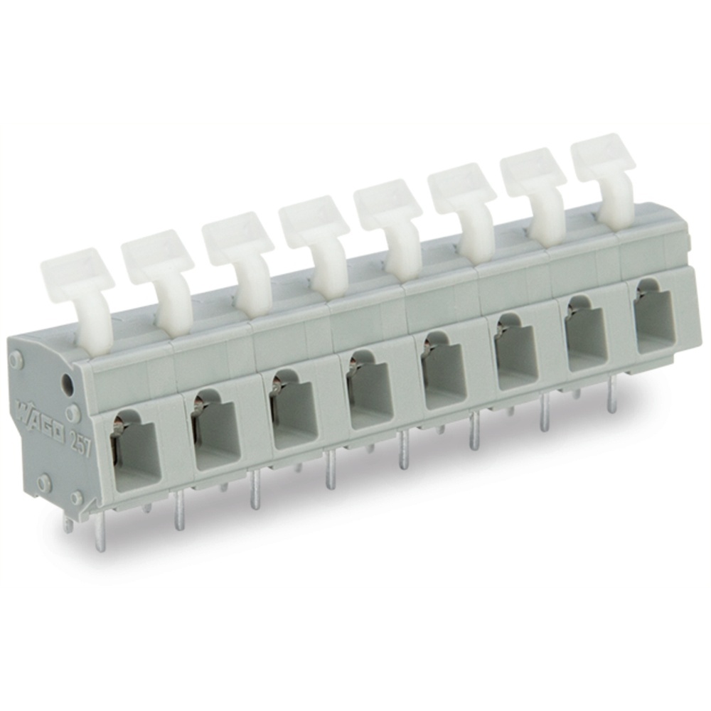Wago Klemmenleiste 257-553 Klemmenleiste mit Betätigungsdrückern 2 Lötstifte/Pol 3-polig Rastermaß 7,5/7,62 mm/0.3 in Drücker abgewinkelt grau Wago Serie 257 EAN Nr. 4044918677011 Warengruppe WAGO Durchführungsklemmen