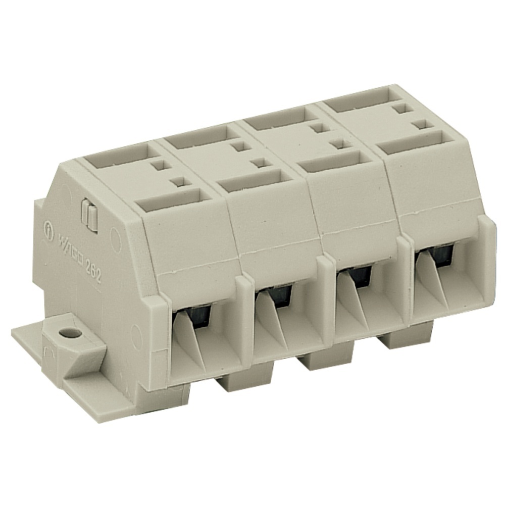 Wago Klemmenleiste 262-234 4-Leiter-Klemmenleiste Ex e II mit Befestigungsflanschen für Schraub- u.ä. Befestigungsarten Befestigungsloch Ø 3,2 mm mit Montagefuß 209-123 auch auf TS 35 für Anwendungen Ex e II geeignet 4-polig lichtgrau Wago Serie 262 EAN Nr. 4044918639040 Warengruppe WAGO Miniklemmen
