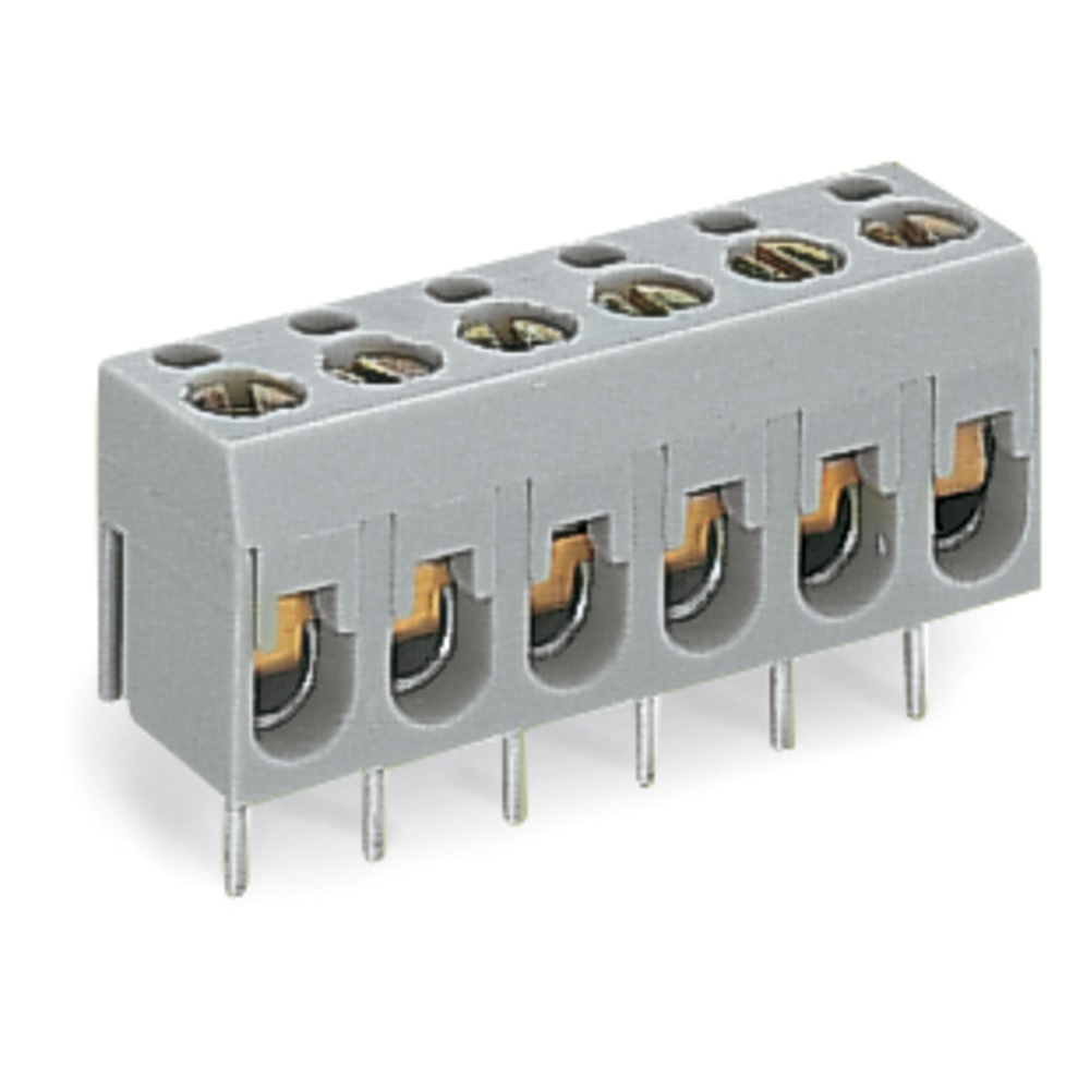 Wago Leiterplattenklemme 237-136 Leiterplattenklemme,2,5 mm²,Rastermaß 5 mm,grau Leiterplattenklemme, 2,5 mm², Rastermaß 5 mm, 6-polig, grau Hersteller Wago Nr. 237-136 EAN Nr. 4066966223750 Warengruppe WAGO Durchführungsklemmen