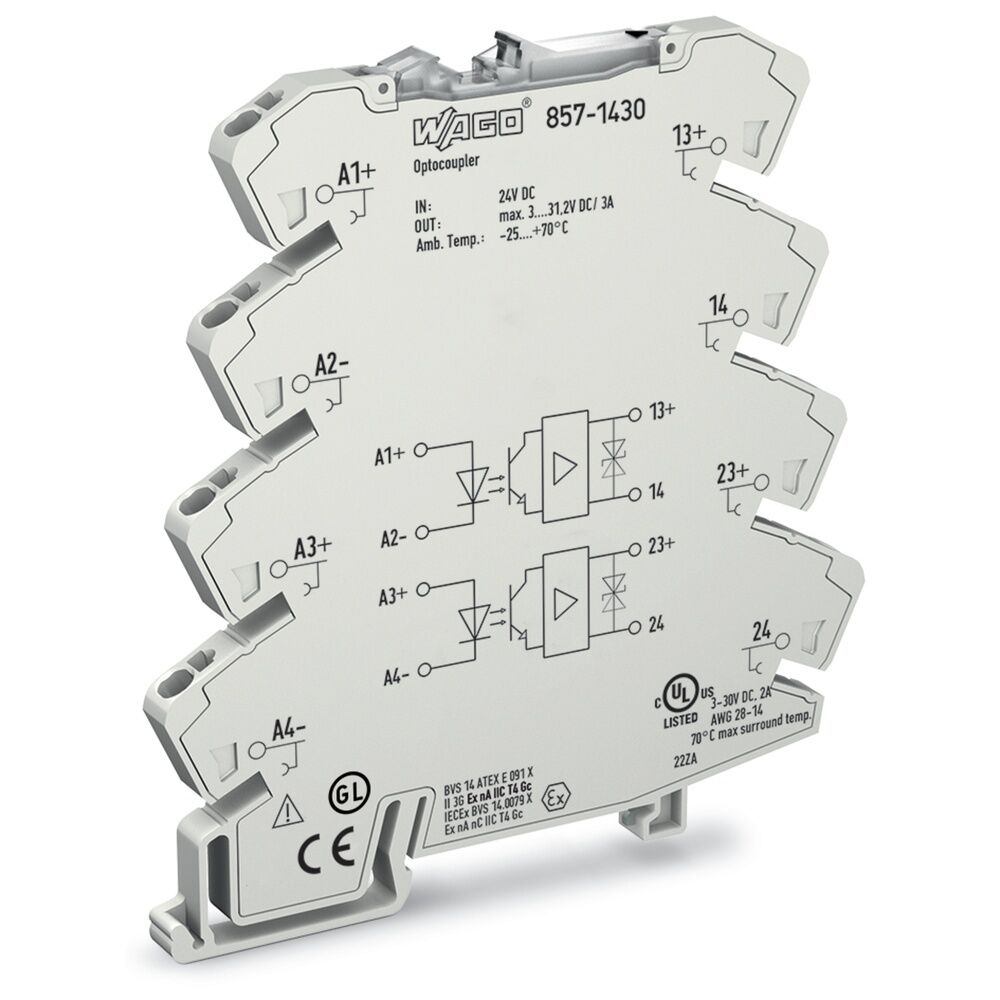 Wago Optokoppler 857-1430 JUMPFLEX -Optokoppler Eingang 2xDC 24 V Ausgang 2xDC 3 V ... 30 V/3 A lichtgrau Wago Serie 857 EAN Nr. 4050821451587 Warengruppe WAGO Elektronik
