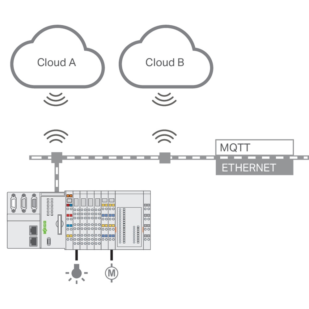 Wago Runtime-Software 2759-248/211-1000 Runtime,Multi Cloud Connectivity,Einzellizenz Runtime, Multi Cloud Connectivity, Single License, Online activationFunktion: MQTT ist ein leistungsfähiges IoT-Protokoll, das sich zu einem Standard in vielen industriellen Automatisierungsapplikationen entwickelt hat. Der Controller PFC200 (Generation 2) und das Touch Panel 600 unterstützen eine MQTT-Verbindung von Haus aus. Mit „Multi Cloud Connectivity“ ist die parallele Anbindung eines Geräts an zwei verschiedene Cloud-Systeme, IoT-Plattformen oder MQTT-Broker möglich. Dadurch lassen sich unterschiedliche Aufgaben in der jeweils passenden Cloud-Anwendung umsetzen. So ist beispielsweise das Device-Management in der WAGO Cloud möglich, während spezifische Aufgaben in einer weiteren Cloud-Lösung, basierend z. B. auf IBM Watson, Amazon Web Services (AWS) oder einer anderen dafür spezialisierten IoT-Plattform, realisiert werden. Auch eine Aufteilung der Daten kann erfolgen. So können die kritischen Daten an einen lokalen MQTT-Broker gehen und die weniger kritischen Daten in eine Cloud. Ihre Vorteile: Mehr Möglichkeiten und Flexibilität Einfache Fehleranalyse durch Konfiguration im WBM, Programmierung in CODESYS Vorteile zweier Cloud-Lösungen/IoT-Plattformen nutzen. Einsatz: Die Lizenz wird in WAGO Upload erfasst und auf ein Gerät geladen. Weitere Installationsschritte sind nicht erforderlich. Hersteller Wago Nr. 27592482111000 EAN Nr. 4066966059854 Warengruppe WAGO Zubehör