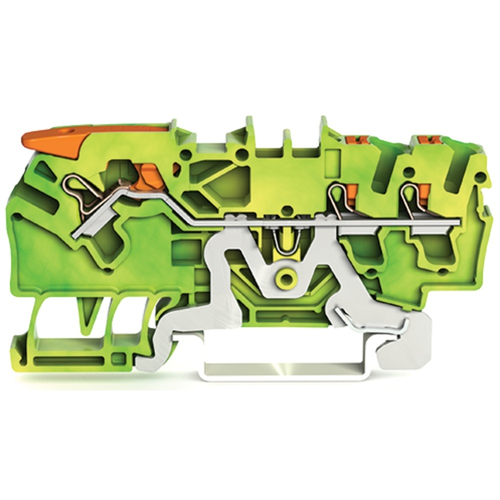 Wago Schutzleiterklemme 2102-5307 3-Leiter-Schutzleiterklemme mit Hebel und Drücker 2,5 mm² mit Prüföffnung grün-gelb 3-Leiter-Schutzleiterklemme mit Hebel und Drücker 2,5 mm² mit Prüföffnung seitliche und mittige Beschriftung für Tragschiene 35x15 und 35x7,5 Push-in CAGE CLAMP grün-gelb Hersteller WAGO Nummer 21025307 EAN Nr. 4055143742009 Warengruppe WAGO Reihenklemmen