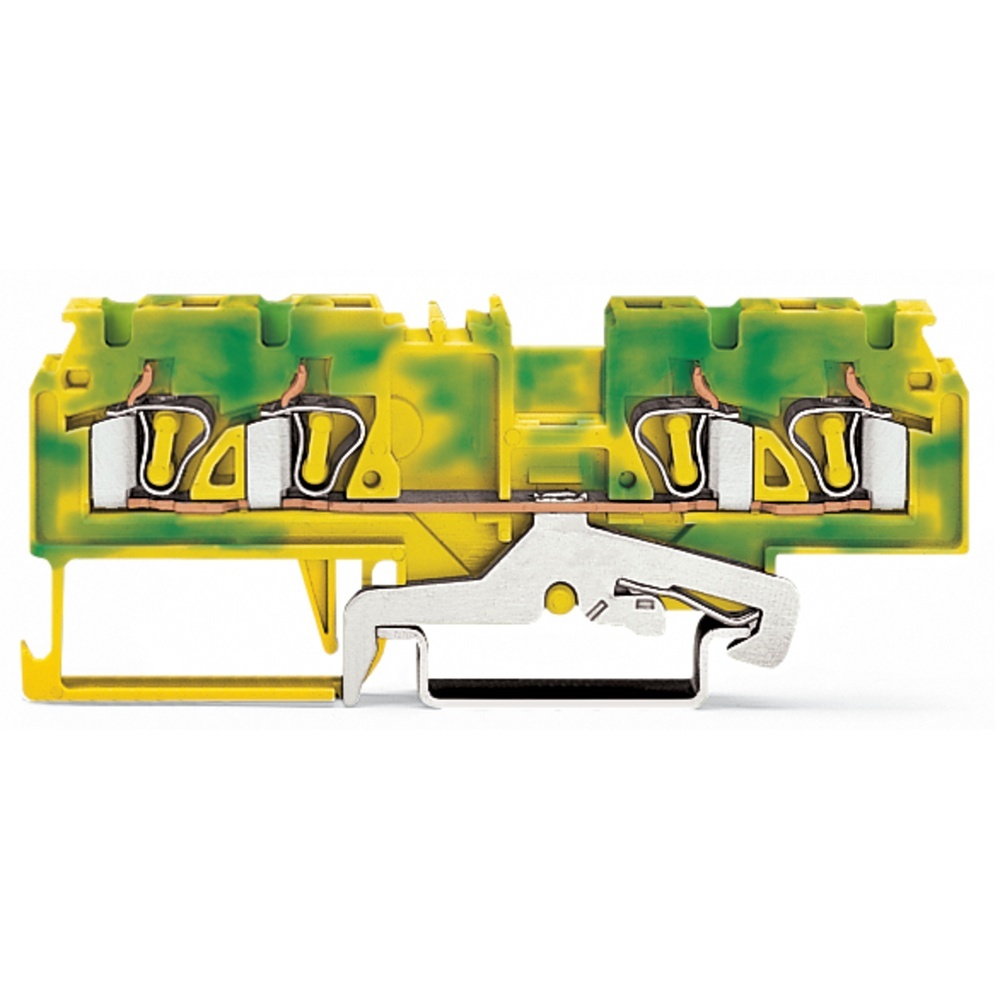 Wago Schutzleiterklemme 880-837/999-940 4-Leiter-Schutzleiterklemme mit Prüföffnung für Prüfstecker Ø 2 mm und Ø 2,3 mm für den Einsatz von Sonderleitungen max. Isolierungsdurchmesser 4,4 mm grün-gelb Wago Serie 880 EAN Nr. 4045454084806 Warengruppe WAGO Reihenklemmen