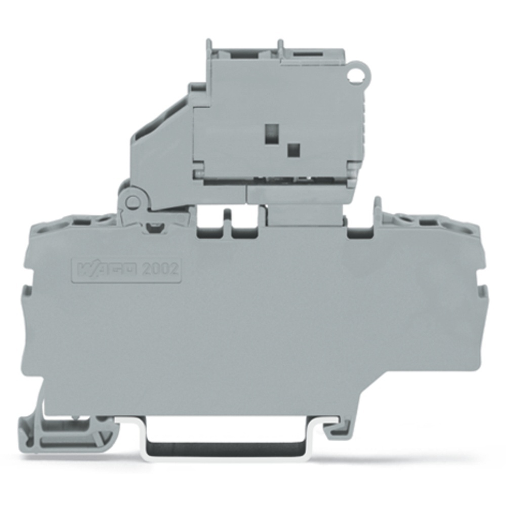 Wago Sicherungsklemme 2002-1911/1000-867 2-Leiter-Sicherungsklemme mit schwenkbarem Sicherungshalter für G-Sicherungseinsatz 5x20 mm 120 V mit Defektanzeige durch LED mit zusätzlicher Brückung grau Hersteller WAGO Serie 2002 EAN Nr. 4050821321798 Warengruppe WAGO TopJob S Klemmen