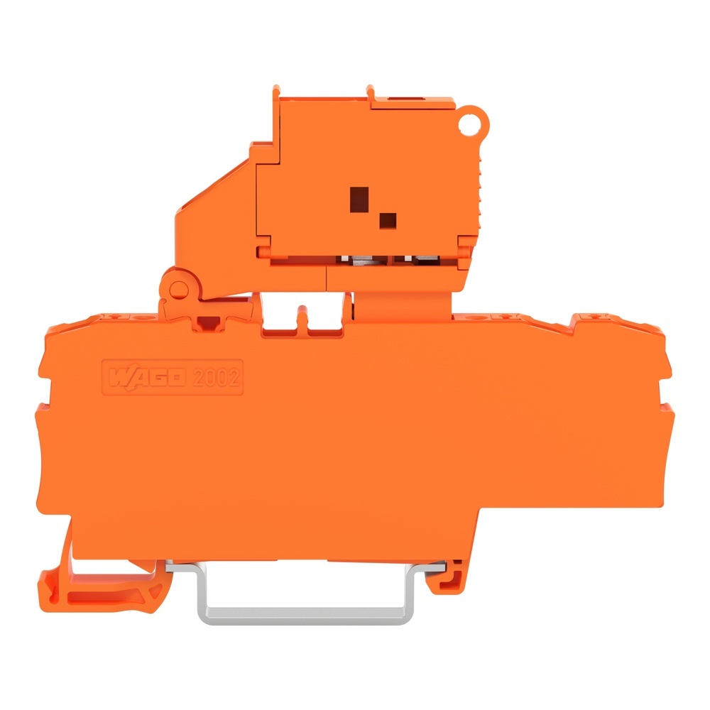 Wago Sicherungsklemme 2202-1712/1000-867 3-Leiter-Sicherungsklemme,mit schwenkbarem Sicherungshalter,mit Abschlussplatte,orange 3-Leiter-Sicherungsklemme, mit schwenkbarem Sicherungshalter, mit Abschlussplatte, für G-Sicherungseinsatz 5x20 mm, mit Drücker, mit Defektanzeige durch LED, 120 V, für Tragschiene 35x15 und 35x7,5, 2,5 mm², Push-in CAGE CLAMP , 2,50 mm², orange Hersteller Wago Nr. 220217121000867 EAN Nr. 4066966313406 Warengruppe WAGO TopJob S Klemmen